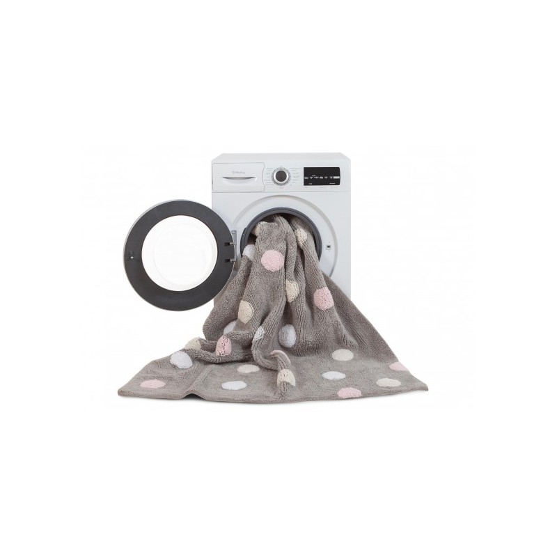 Produktinformationen "Lorena Canals - Teppich "Tricolor Polka Dots" Grey/Pink 120 x 160"
