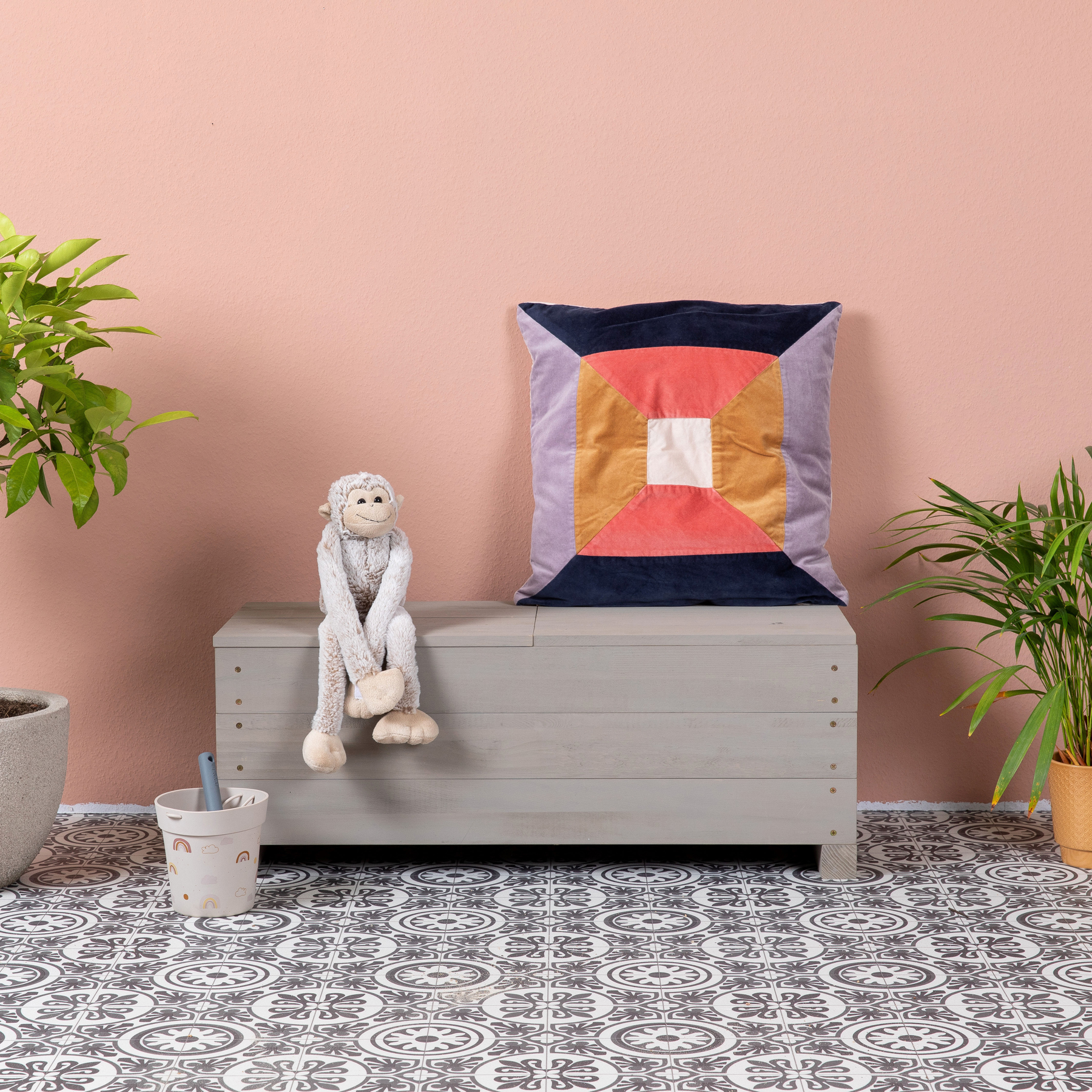 Dank der kompakten, transportfreundlichen Form kann die Bank überall dort eingesetzt werden, wo sie gerade gebraucht wird – im Garten, auf der Terrasse oder dem Balkon. So wird Spielen, Matschen und Entdecken jederzeit möglich.