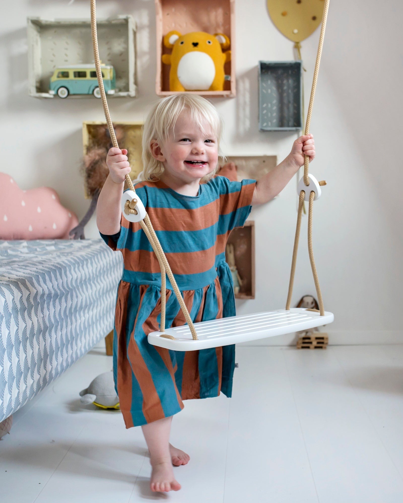 Auf einer Schaukel durch die Luft zu fliegen, ist für die meisten Kinder der größte Spaß, den es gibt. Lass die Kinder spielen, hin und her schwingen, um ihre motorischen Fähigkeiten, Kraft und Balance zu entwickeln. Die Lillagunga Classic ist ein langlebiges und stilvolles Produkt, das sowohl für den Innen- als auch für den Außenbereich geeignet ist. Dank des patentierten Mechanismus zur Einstellung der Sitzhöhe ist die Schaukel sowohl sicher als auch einfach zu benutzen.