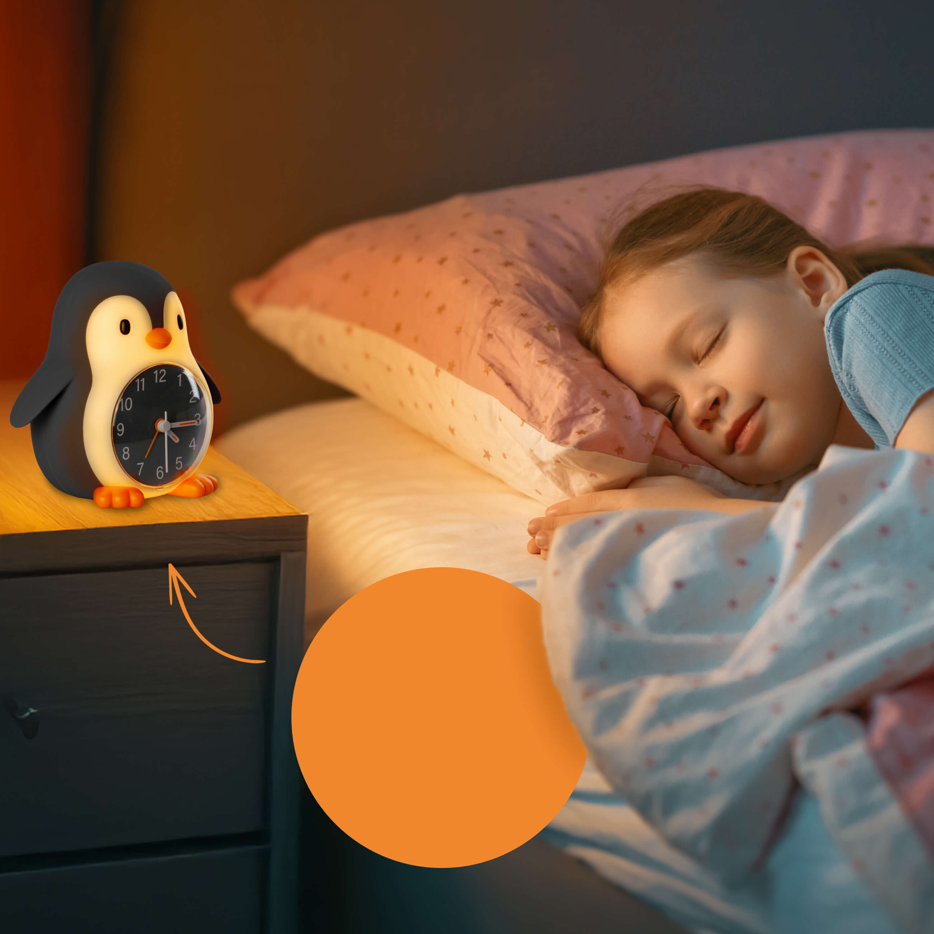 Der Kinder-Wecker POPPY PENGUIN vereint cleveres Design mit liebevollen Details – ein echter Helfer für entspannte Morgen- und Abendstunden. Bereits einige Minuten vor der Weckzeit beginnt das sanfte Wake‑Up-Light zu leuchten und lässt Kinder auf natürliche Weise erwachen. Für ruhige Einschlafmomente sorgt das warmweiße Nachtlicht mit 30‑Minuten-Sleeptimer.