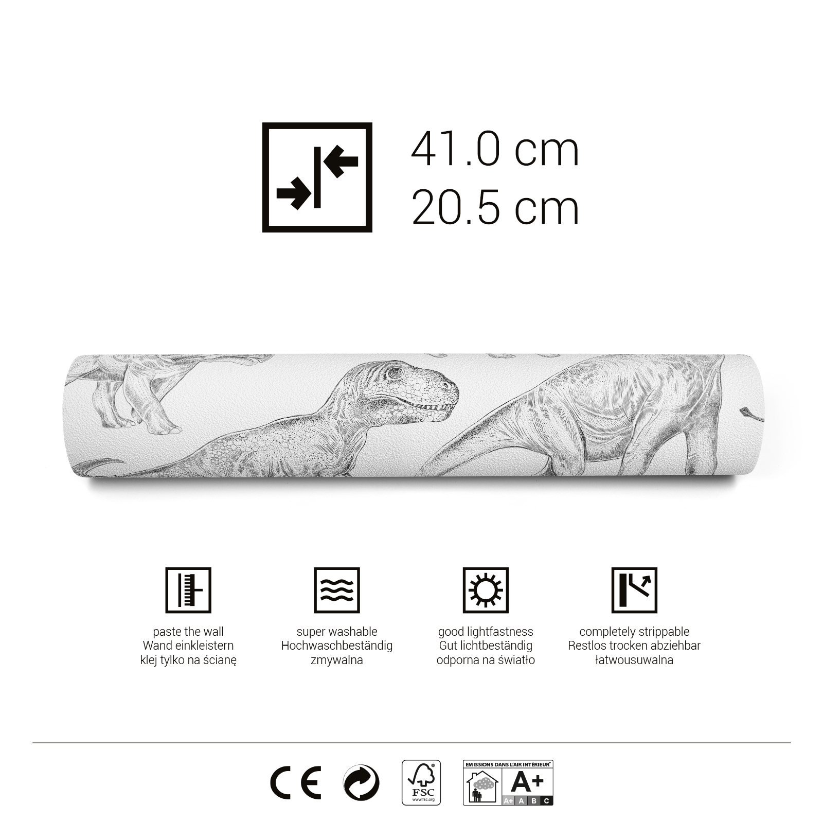 Rolle Tapeten für Kinder (0,53x10 m) Pastelowe Love® Dino weiß Perfekt für jedes Kinderzimmer.