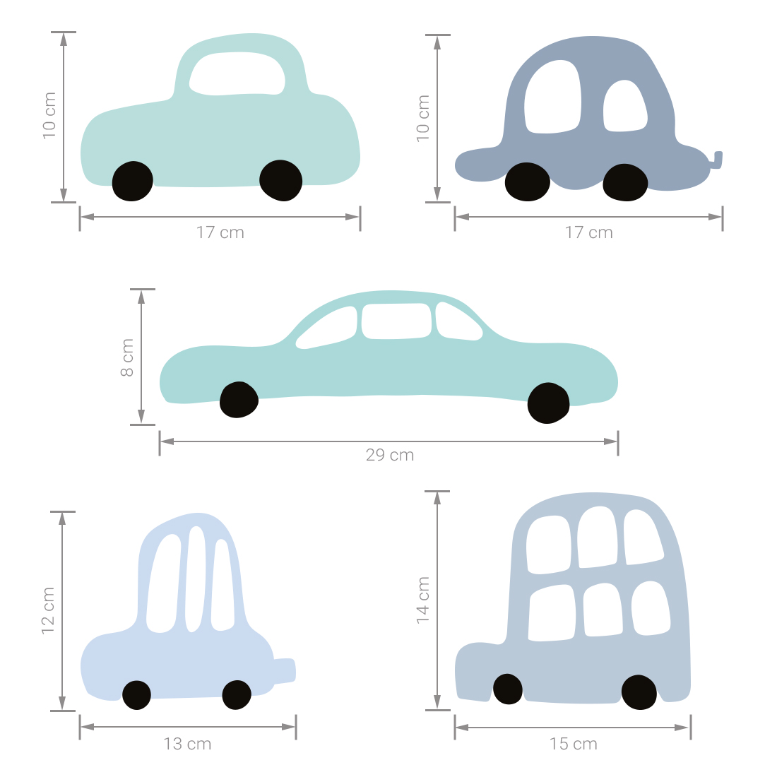 Im Set enthalten: 12 blaue Autos in verschiedenen Ausführugen, 8 mintfarbene Autos in verschiedenen Ausführungen