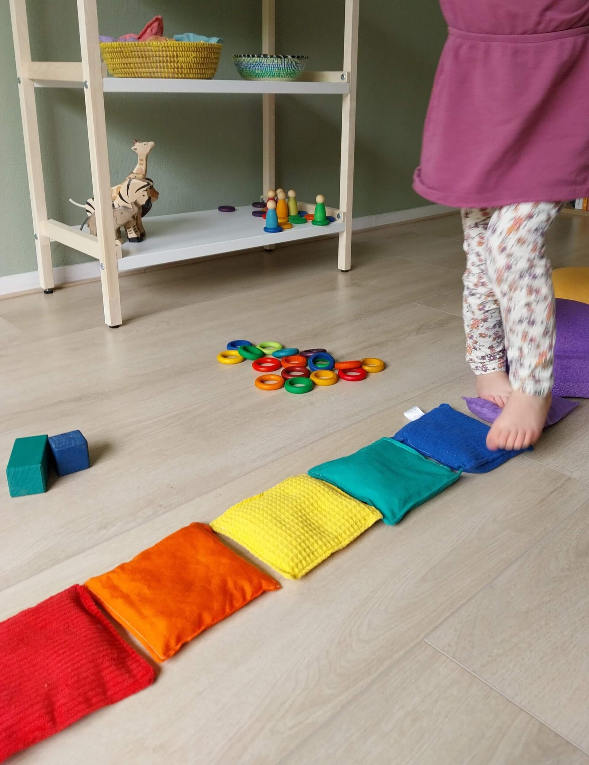 Die Sensorik-Täschchen von Pit & Play bieten Kindern ein einzigartiges Erlebnis. Dank ihrer unterschiedlichen Stoffstrukturen regen sie die Sinne an und fördern spielerisch die Hand-Augen-Koordination. Ob zum Entspannen nach einem aufregenden Tag oder als Teil eines aktiven Parcours – die vielseitigen Kissen laden zum Hören, Fühlen und Bewegen ein. Kinder können über sie springen, sie in Körbe werfen oder barfuß darüber laufen und dabei überschüssige Energie abbauen.