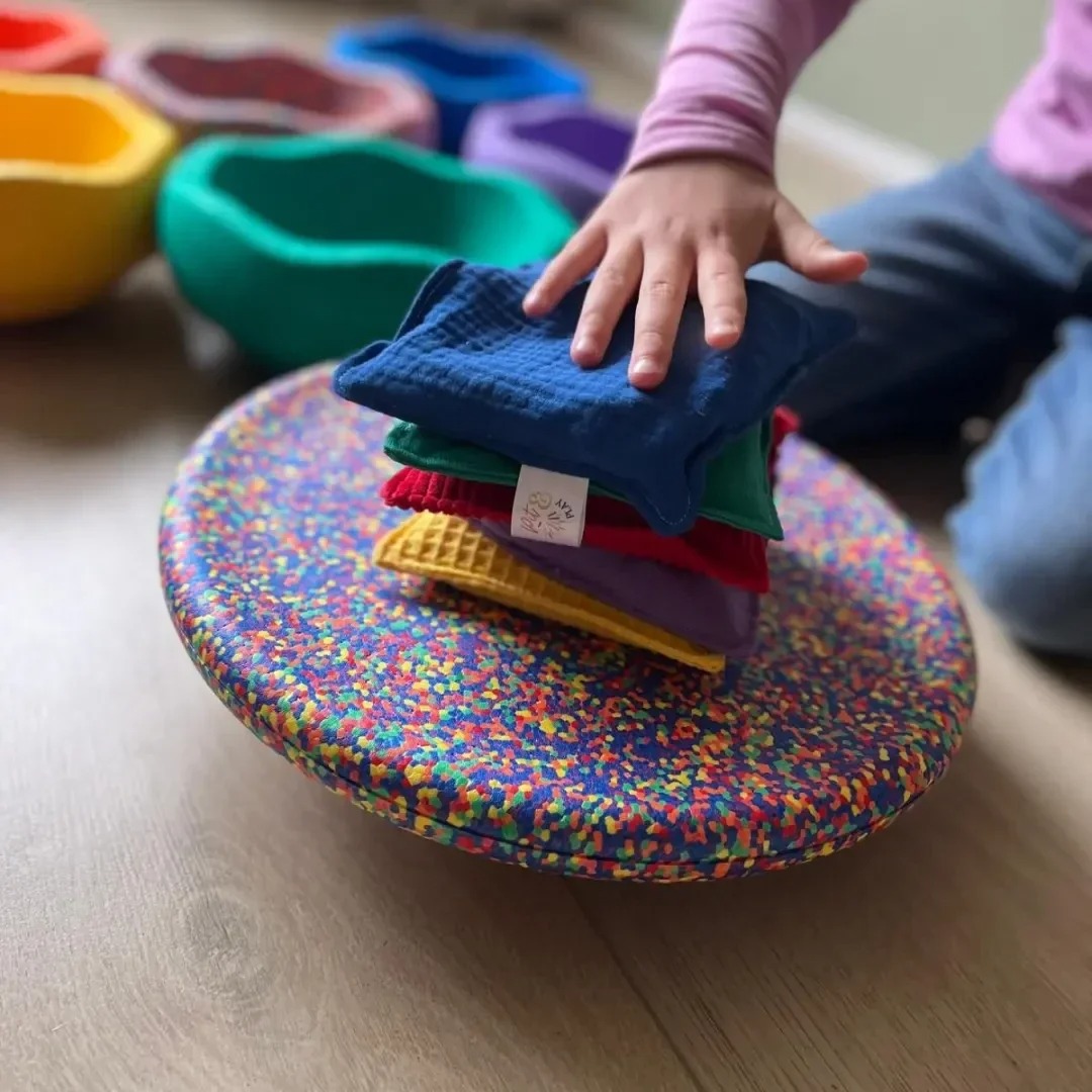 Wichtige Hinweise: Lass dein Kind nie unbeaufsichtigt mit den sensorischen Kissen spielen. Überprüfe die Kissen vor und nach jeder Nutzung sorgfältig auf Schäden, um maximale Sicherheit zu gewährleisten.
