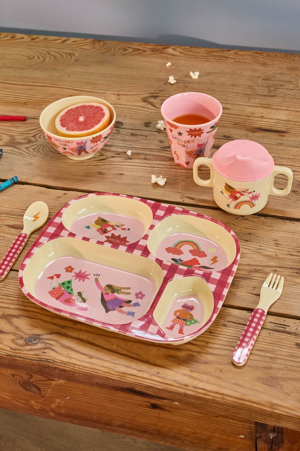 Der RICE Melamin-Teller im Pink Hero Print bringt gute Laune und Kreativität an den Tisch. Mit seinem fröhlichen Design lädt er Kinder dazu ein, Mahlzeiten spielerisch zu entdecken und ihrer Fantasie freien Lauf zu lassen. Ob Frühstück, Mittagessen oder Snack – dieser Teller macht jeden Moment ein bisschen bunter.
