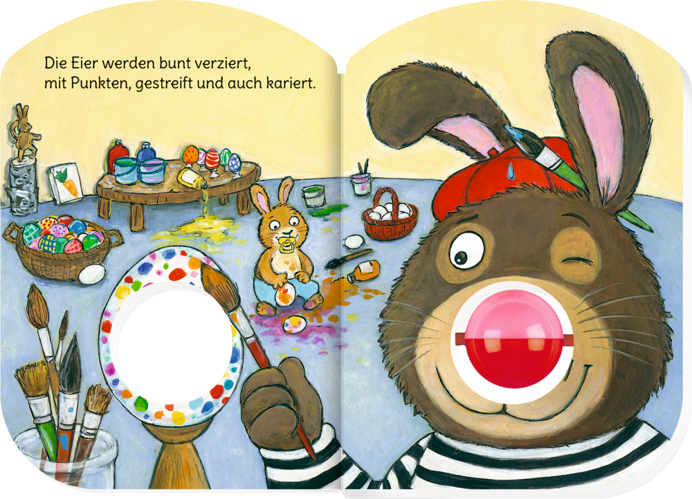Die Kullernasen-Osterhasen bringen fröhlichen Osterspaß für die Kleinsten! Viele kunterbunte Osterhasen kullern mit ihren lustigen Kullernasen und laden Babys und Kleinkinder zum Staunen, Greifen und Entdecken ein.