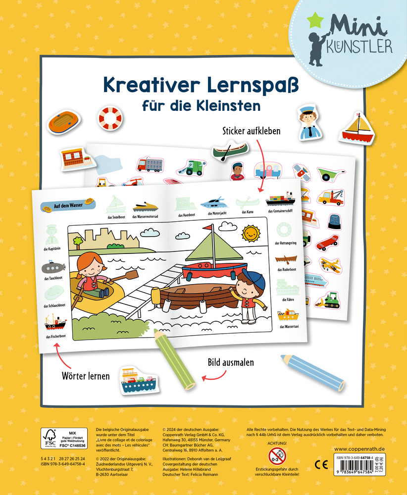 Produktinformationen "Spiegelburg - Mini-Künstler: Sticker-Malbuch: Fahrzeuge "