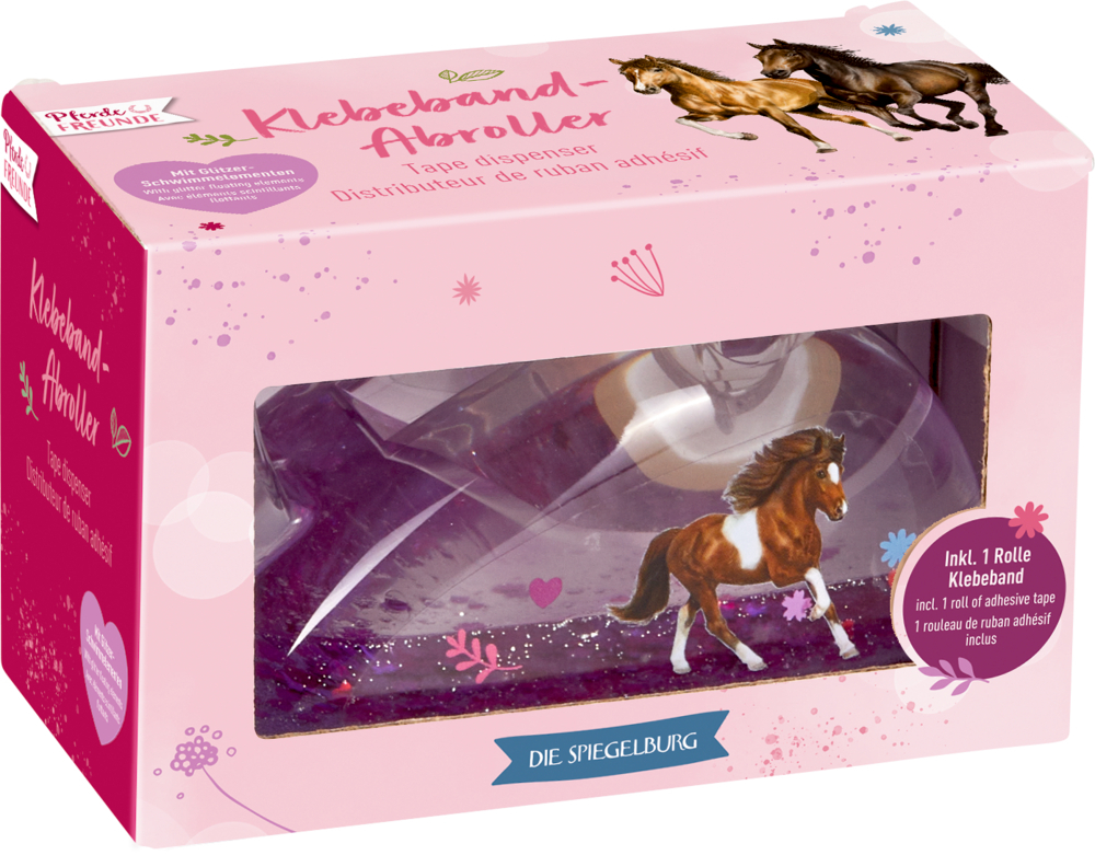 Dieser glitzernde Klebebandabroller bringt Schwung und Farbe auf den Schreibtisch von Pferdeliebhabern jeden Alters. Mit funkelnden Glitzerpartikeln und Pailletten gefüllt, verleiht er kreativen Projekten, Schularbeiten oder dem Alltag eine magische Note. Eine Klebebandrolle ist bereits enthalten, und der Abroller lässt sich einfach mit handelsüblichen Klebebandrollen nachfüllen – für langfristigen Einsatz. Ein praktisches, aber gleichzeitig zauberhaftes Accessoire, das nicht nur funktional ist, sondern auch ein tolles Geschenk für Pferdefans darstellt.