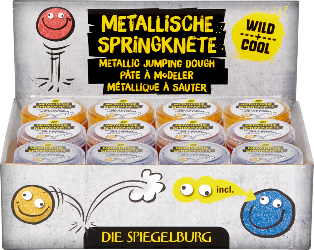 Wild + Cool: Diese außergewöhnliche metallische Knete begeistert wie ein Flummi und bietet unendlichen Spielspaß. Kneten, formen, experimentieren und hüpfen lassen – die elastische Knete lässt sich zu kreativen Figuren gestalten. Mit den zwei beiliegenden Wackelaugen werden die fantasievollen Kreationen lebendig. Ideal für langen und abwechslungsreichen Spielspaß!