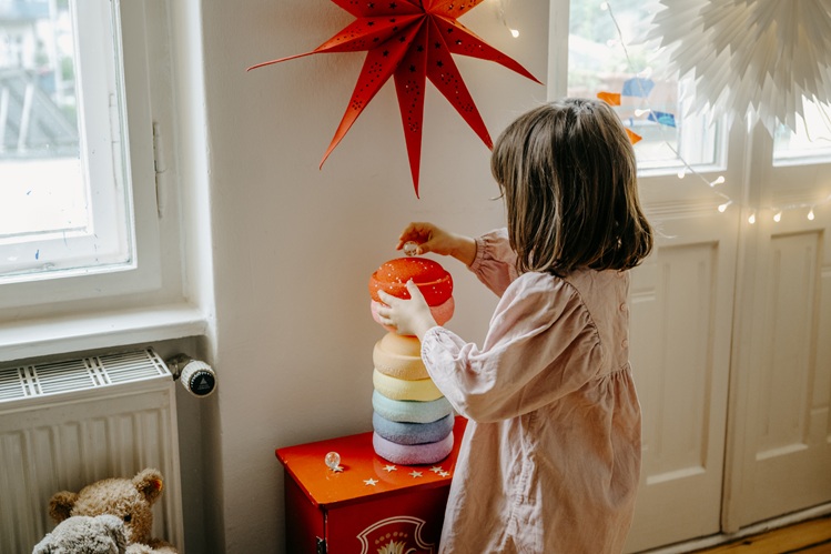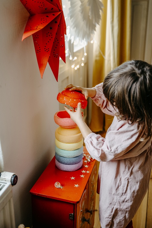 Verwende eine ebene, rutschfeste Oberfläche, wenn mit Stapelstein® Produkten balanciert oder Hindernisparcours gebaut werden.