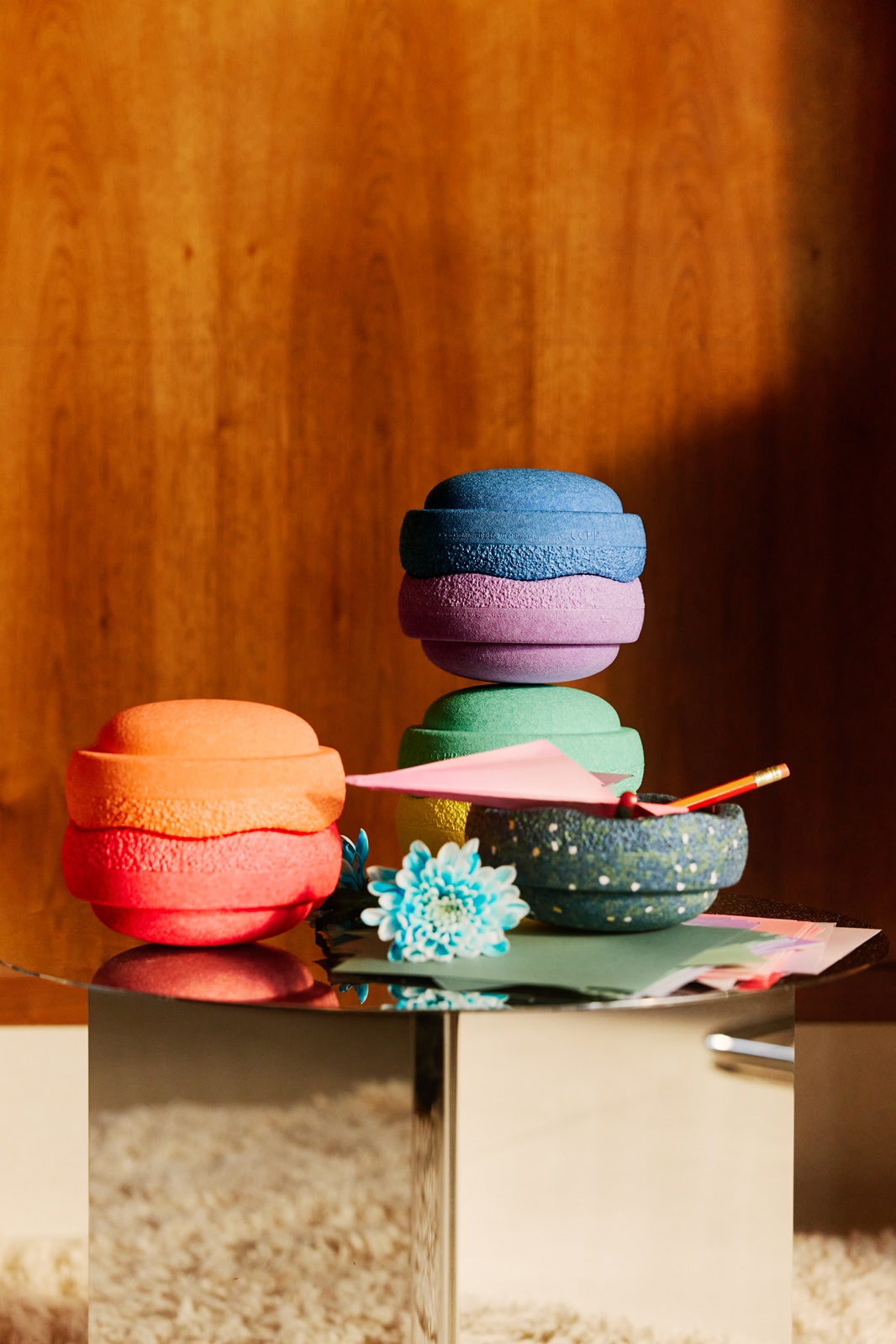 Verwende eine ebene, rutschfeste Oberfläche, wenn mit Stapelstein® Produkten balanciert oder Hindernisparcours gebaut werden.