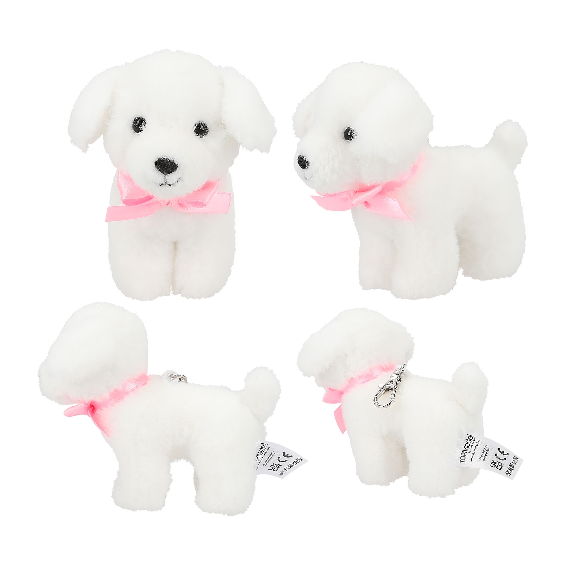 Flauschig-süße Plüschhunde im Mini-Format mit Karabiner zum Anhängen z. B. an die Tasche oder den Schlüsselbund.