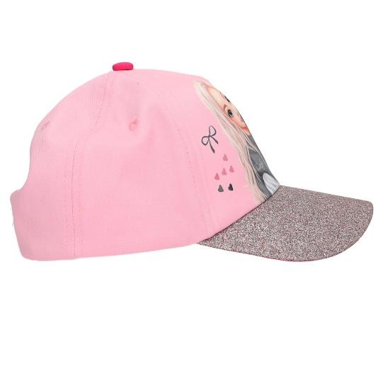 Das rosafarbene Cap begeistert mit einem stylishen Doppel-Modelmotiv und süßen Icons auf der Front. Highlight ist der metallisch glitzernde Schirm, der jedes Outfit funkeln lässt.