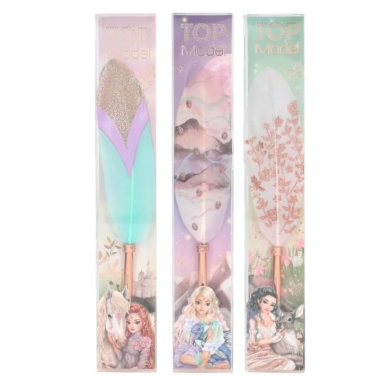 Erlebe traumhaftes Schreibgefühl mit den Federkugelschreibern von TOPModel! Die eleganten Stifte mit roségoldenen Schäften tragen ein dezentes Logo und kommen in drei einzigartigen Feder-Designs: Lila mit roségoldenem Glitzer, Salbeigrün mit roségoldener Spitze, Pastellige Marmorierung mit roségoldenen Punkten. Die schwarze Mine (SCHNEIDER 56 DIN 166554 D1) ist austauschbar, sodass du lange Freude am Schreiben hast.