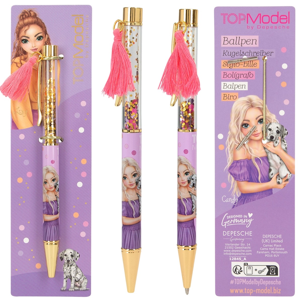 Ein perfekter Stiftmix aus Konfetti, Troddel und TOPModels: Der Kugelschreiber ist in zwei Designs erhältlich – Lila-Gold mit rosa Quaste und passendem Konfetti oder Silber-Rosa mit limettengrüner Quaste und passendem Konfetti. Die austauschbare Mine schreibt in blauer Tinte. Besonders cool: Der transparente obere Teil des Stifts enthält farbenfrohes Konfetti, das sich beim Schreiben hin und her bewegt.