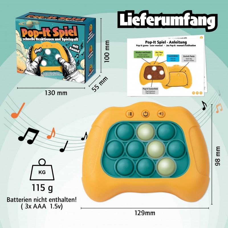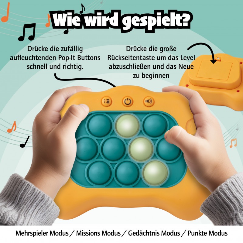 Der Puzzlespaß für schnelle Reaktionen: Drücke die zufällig aufleuchtenden Pop-It Buttons schnell und richtig. Anschließend verwende die Ruckseitentaste, um das Lebel abzuschließen und dann neue zu beginnen.