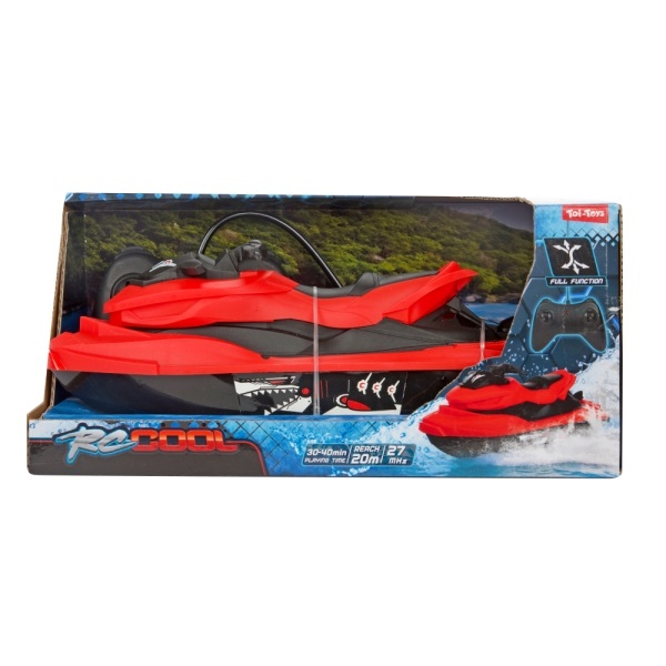 Volle Fahrt voraus. Der RC-Cool Wasserscooter Speed bringt echtes Rennfeeling ins Wasser. Mit seiner kompakten Größe von ca. 26 cm ist er wendig, schnell und ideal für spannende Fahrten im Pool, See oder ruhigen Gewässern.