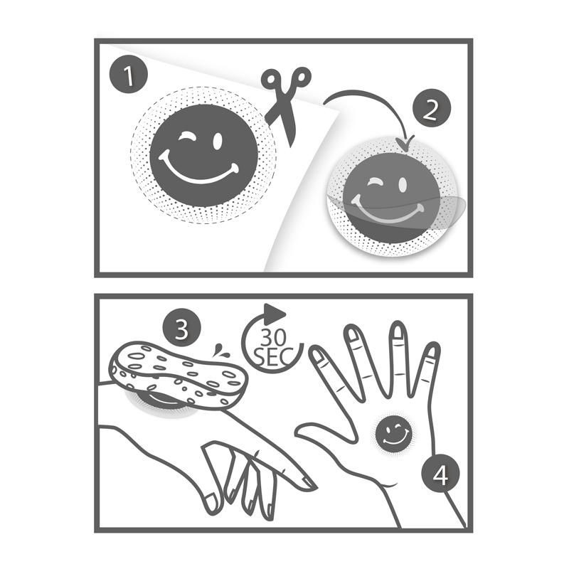 Die Anwendung ist kinderleicht: Einfach auf die Haut aufbringen und schon entstehen stylische Smileys mit schimmerndem Effekt. Ideal für Kindergeburtstage, Partys oder als kleines Highlight im Alltag.