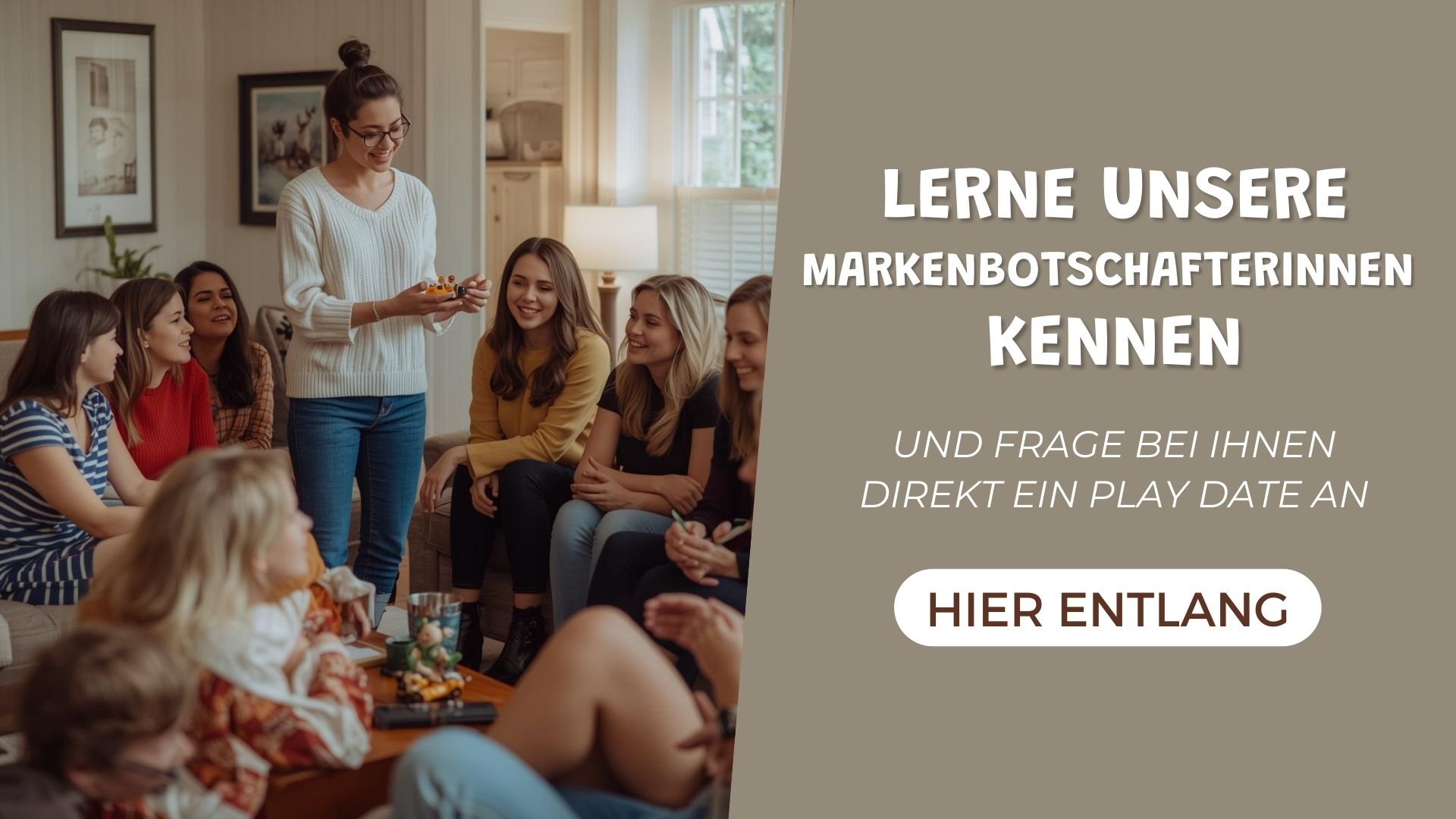 Unsere Botschafterinnen bringen das Traumland zu unseren Kund:innen nach Hause und in jeden Winkel der Republik! Wir organisieren magische Play Dates, bei denen endlich auch mal die Großen spielen dürfen. Die Play Dates sind wie kleine Außenstellen des Traumlands, mit den neusten Trends zum Anfassen, den coolsten Highlights zum Ausprobieren und immer ein bisschen Magie im Gepäck. Die Kund:innen können Fragen stellen, spielen, testen … und mit uns bei einem Gläschen Sekt oder Limo anstoßen: auf uns und auf das Kind, das in jedem von uns steckt!