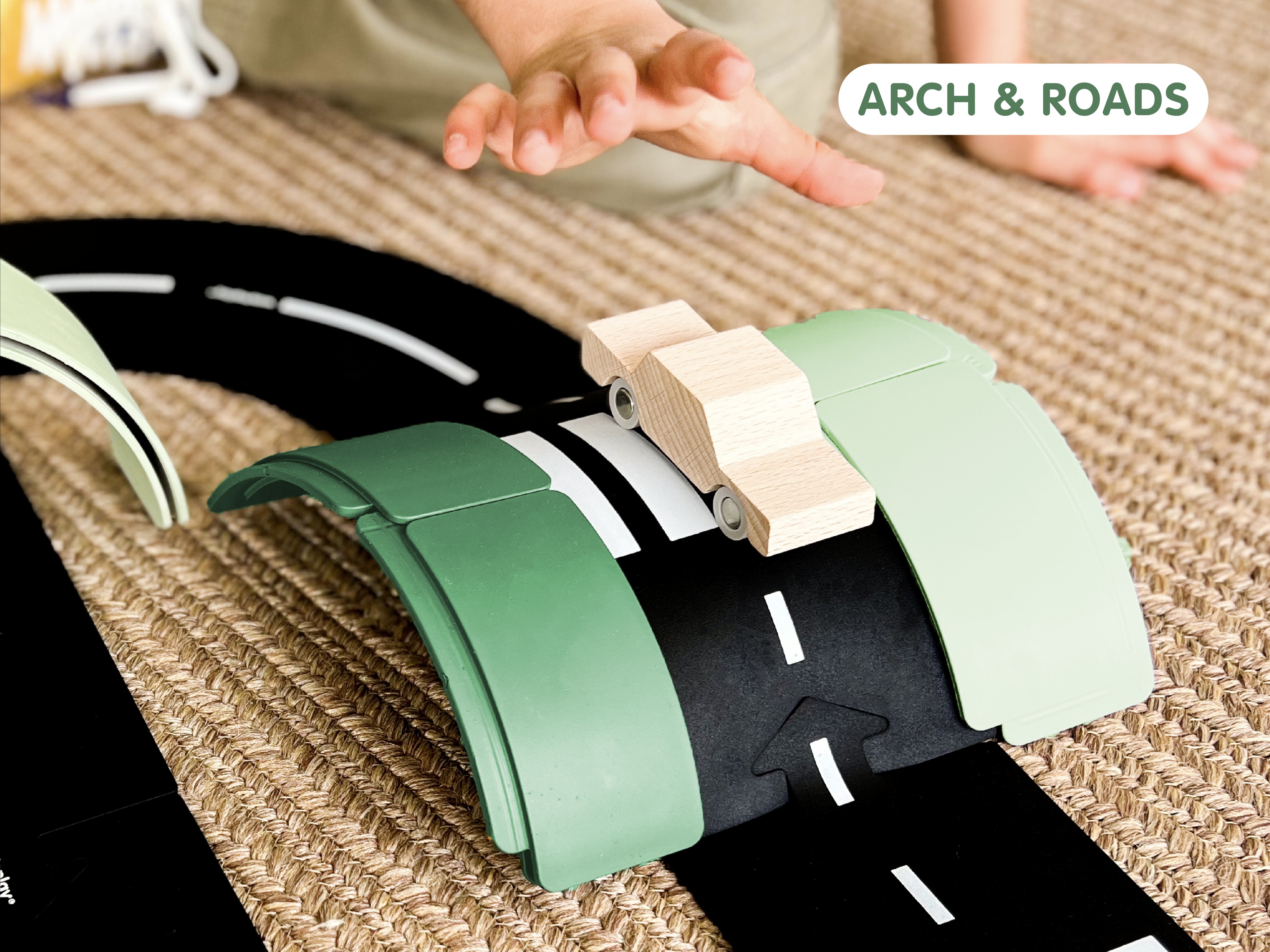 Die Arches bestehen aus 100 % recyceltem Kunststoff und werden in Europa hergestellt – sicher, nachhaltig und langlebig. Sie wachsen mit den Ideen deines Kindes und sind vollständig kompatibel mit allen Waytoplay-Sets. So werden Straßen zu Rampen, Brücken oder architektonischen Meisterwerken.