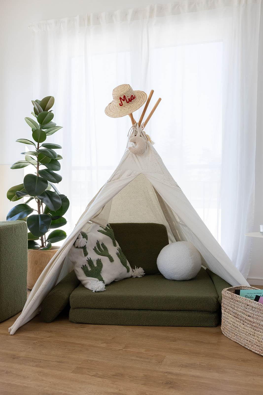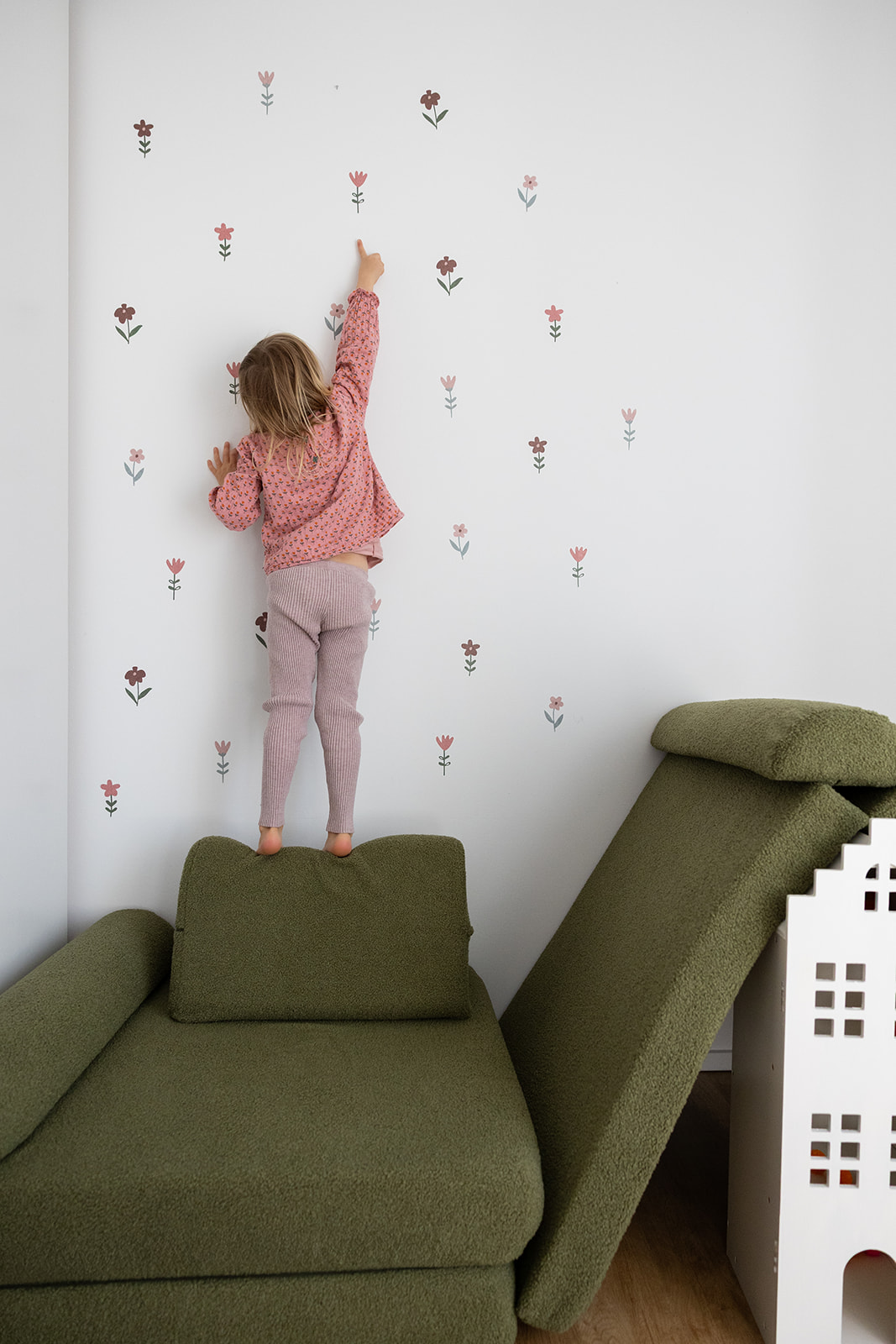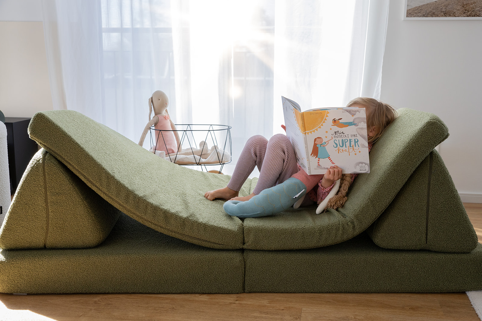 WUMBOLINO passt sich spielerisch den Bedürfnissen deines Kindes an. Ob als Liegewiese, Kuschelecke, Ninja-Parcours, Höhle oder Gästebett – mit den flexiblen Modulen aus zwei klappbaren Matratzen, zwei Dreieckskissen und zwei Armlehnen sind der Fantasie keine Grenzen gesetzt.
