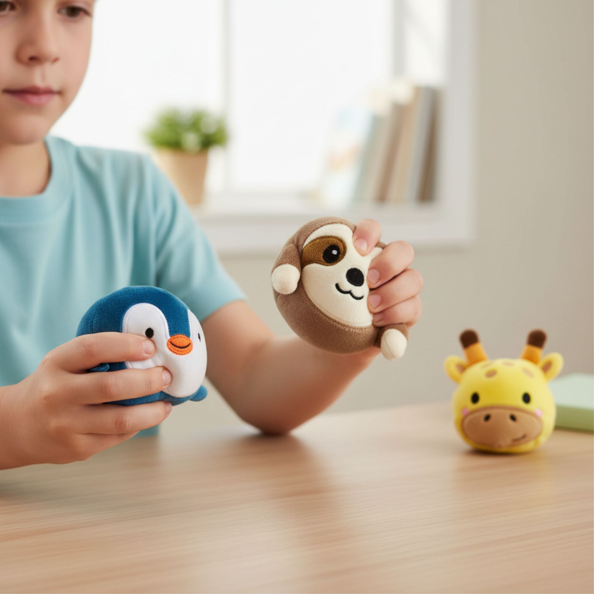 Die kompakte Größe von etwa 6 cm macht ihn zum praktischen Begleiter für Schule, Alltag oder kurze Entspannungsmomente. Als Fidget Spielzeug oder klassischer Stressball eingesetzt, unterstützt Frosti dabei, Spannungen abzubauen und die Konzentration zu fördern.