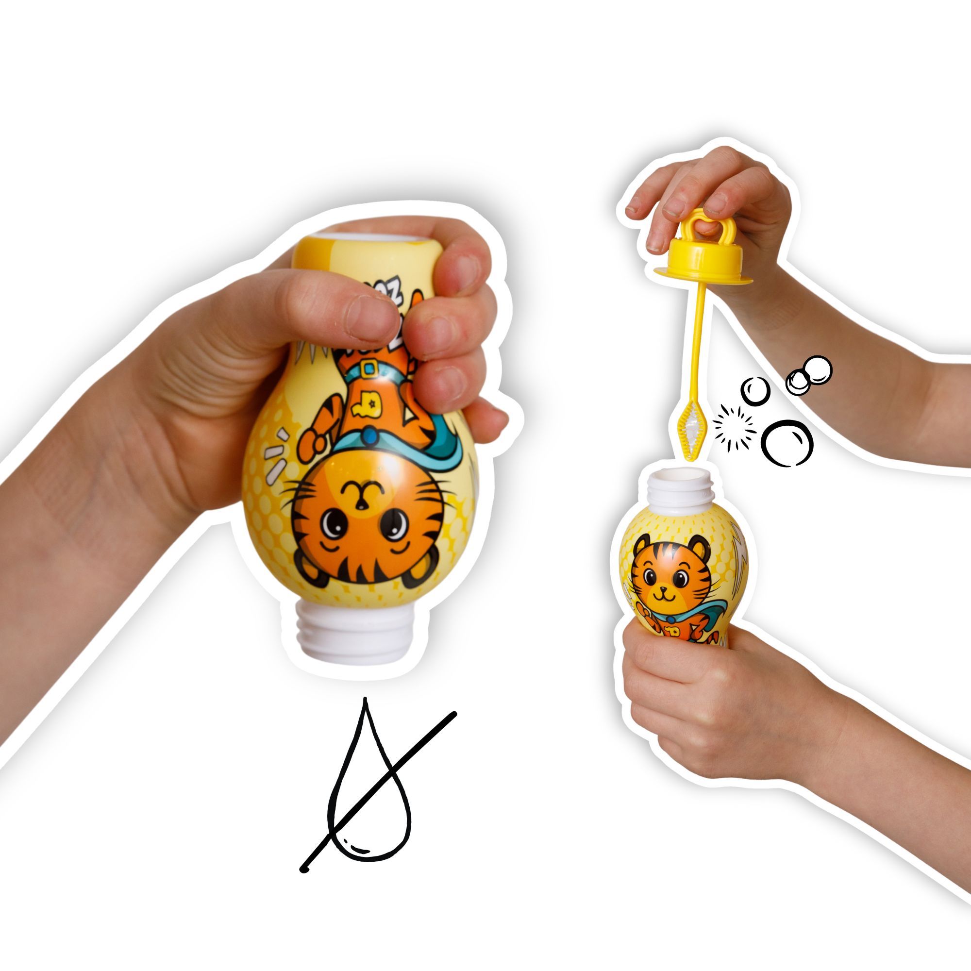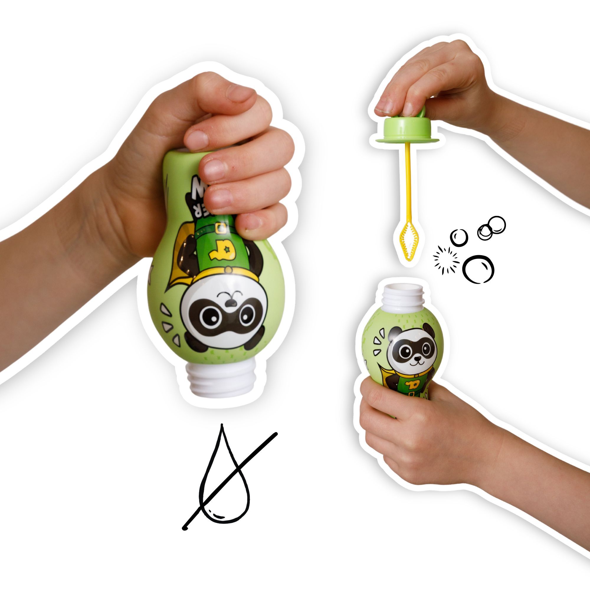 Dank der auslaufsicheren Flasche sind die Seifenblasen besonders praktisch für unterwegs – ideal für den Rucksack, die Schultasche oder als kleines Mitgebsel auf Kindergeburtstagen. Einfach öffnen, den Stab herausziehen und schon steigen die ersten schillernden Seifenblasen in die Luft.