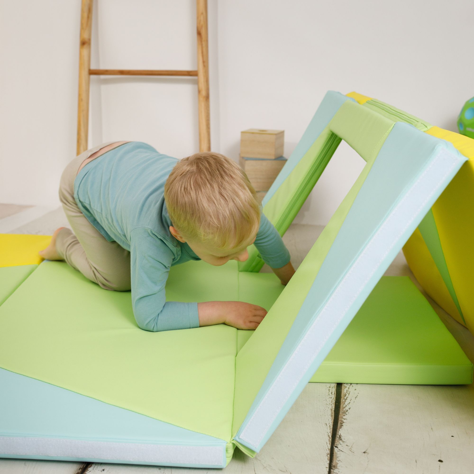 Gefertigt aus robustem, abwischbarem Kunstleder mit extra dicker, stoßabsorbierender Polsterung, bietet die Matte optimalen Schutz beim Spielen und Toben. Dank sicherer Details wie weich eingefassten Reißverschlüssen und sanften Klettverbindungen ist die Nutzung auch für Babys absolut unbedenklich.