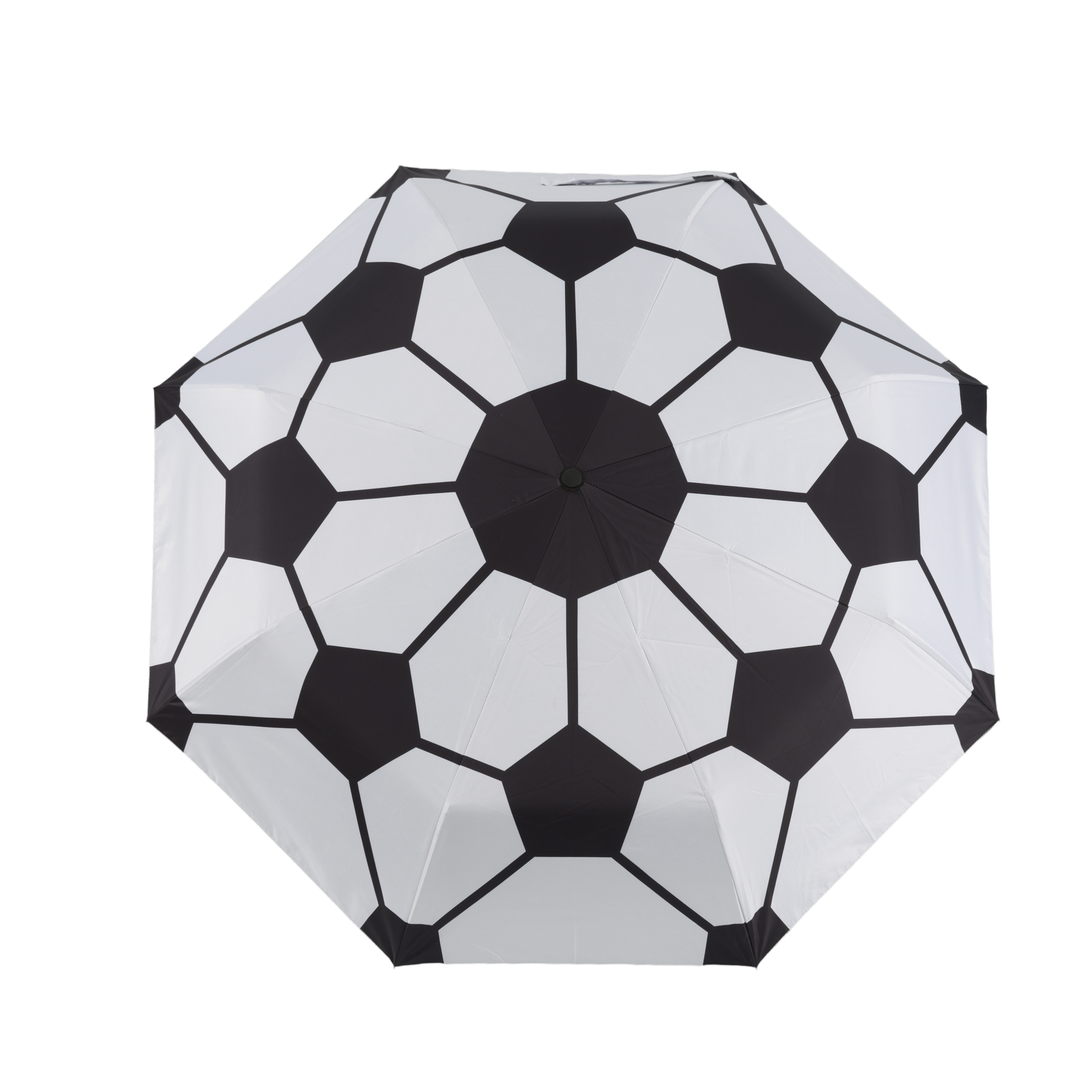 Der Regenschirm von iTotal im Fußball-Design bringt Stadion-Feeling in graue Regentage.