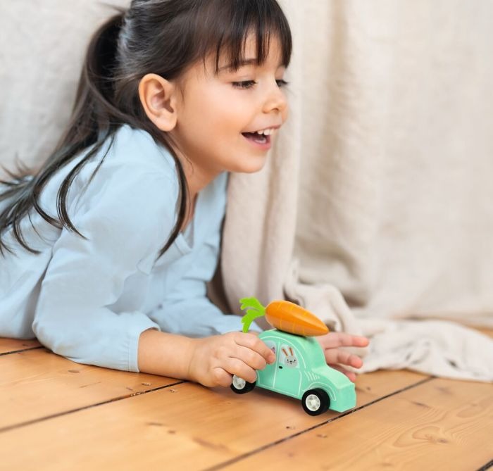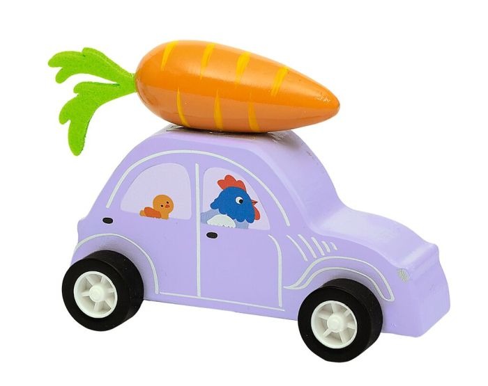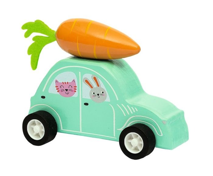 Die fröhlichen Frühlingsmotive und die große Möhre auf dem Dach machen das Holzauto zum Blickfang und laden zum fantasievollen Spielen ein. Dank robuster Verarbeitung ist es ideal für kleine Kinderhände und fördert gleichzeitig die motorischen Fähigkeiten.