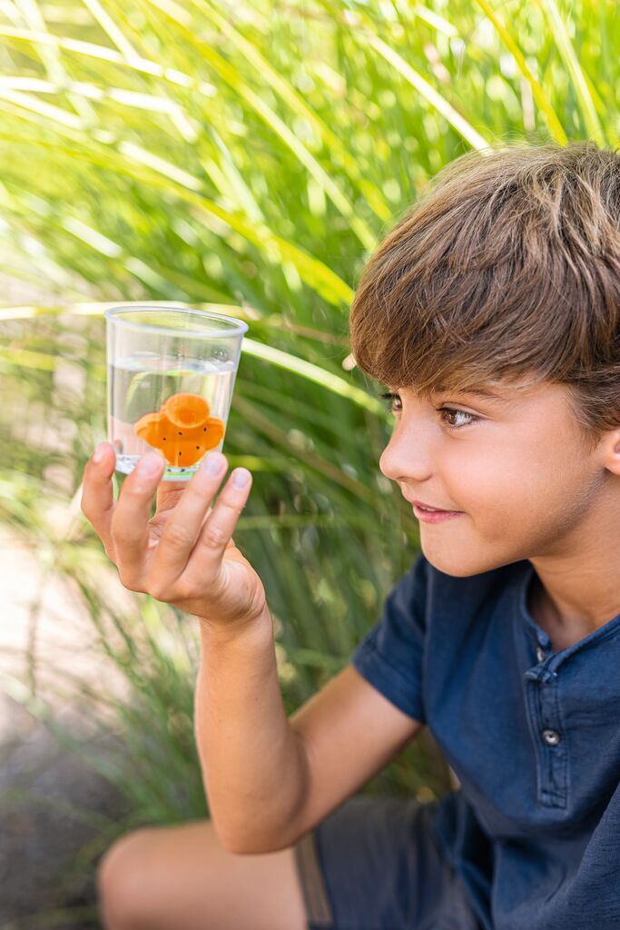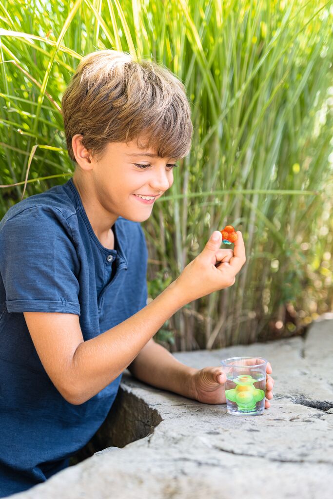 Einen Flummi selbermachen? Dieses Set macht’s möglich! Einfach das Granulat in die Form streuen, das Ganze ins Wasser legen, danach öffnen und schon kann der Hüpfspaß mit dem Flummi beginnen. Das DIY-Set zur Flummiherstellung enthält drei Granulatfarben für farbenfrohe Flummis sowie zwei verschiedene Formen. Auf den beiliegenden spannenden Informationen lernen Kinder, wie aus Granulat und Wasser durch Adhäsion ein Flummi entstehen kann. Cooler Spielspaß und Lernen gehen hier Hand in Hand!