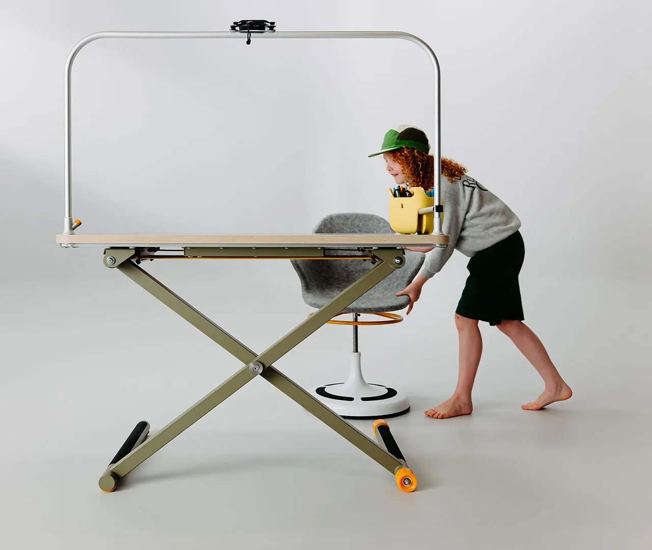 Der erste höhenverstellbare Schreibtisch für Kinder mit Bewegungsdrang.