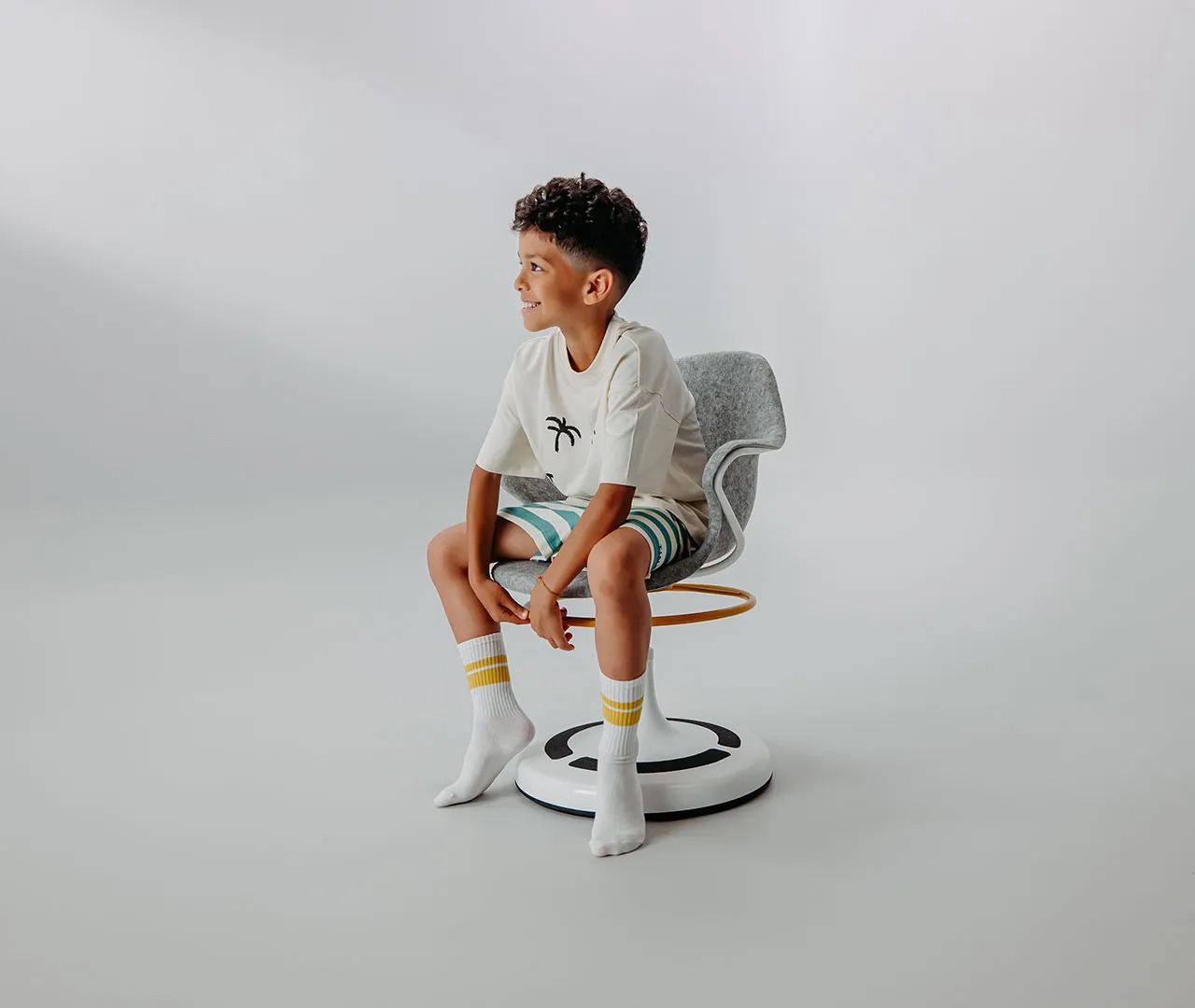 Der Stuhl lässt sich individuell an Kinder von 108 cm bis 160 cm Körpergröße anpassen und wächst damit vom Kindergartenalter bis zum Teenager mit. Das sorgt nicht nur für maximalen Komfort, sondern macht den poptop Stuhl auch zu einer besonders nachhaltigen Wahl.