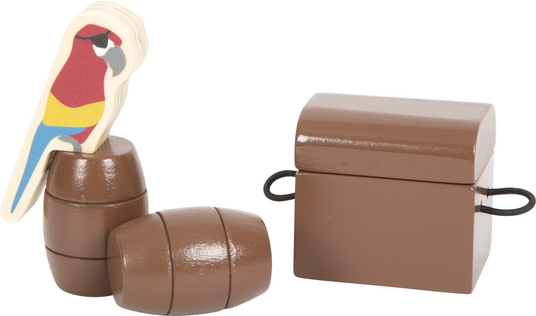 inkl. Beiboot zum Rudern, Strickleiter, Papagei, 2 Fässer, Hai, Planke, Piratenflagge und Schatztruhe mit Deckel