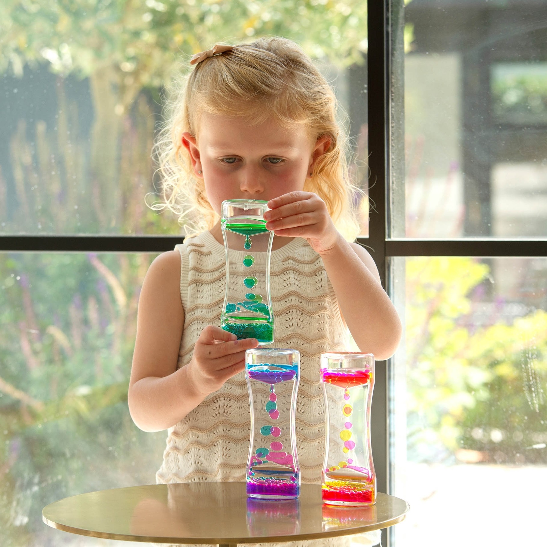 Staunen, beobachten, entspannen: Mit dem Sensory Liquid Set entdecken Kinder die beruhigende Magie fließender Farben.