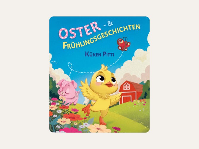 Mit der tonies Hörfigur „Küken Pitti: Oster- und Frühlingsgeschichten“ erleben Kinder fröhliche Abenteuer auf dem Bauernhof. Pittis Alltag ist alles andere als langweilig: Gemeinsam mit seinem besten Freund Ferkel Oleander entdeckt er den Frühling, lernt das Oster-Spiel von den Kühen, hilft einem kleinen Fuchsjungen und erlebt sogar an Regentagen spannende Abenteuer mit den Entenküken.